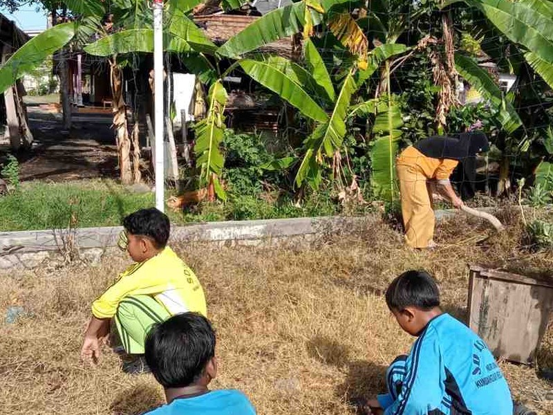 Kelas 4, 5, dan 6 melaksanakan Selasih (Selasa Bersih) di halaman sekolah